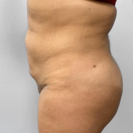 This woman in her mid-thirties wanted to enhance the appearance of her abdomen, flanks, and buttocks, but did not want to proceed with a tummy tuck currently. She chose to have liposuction of the abdomen and flanks with BBL (fat) injections to the buttocks. She has been very happy with her contour results and is pictured before and three months after surgery.