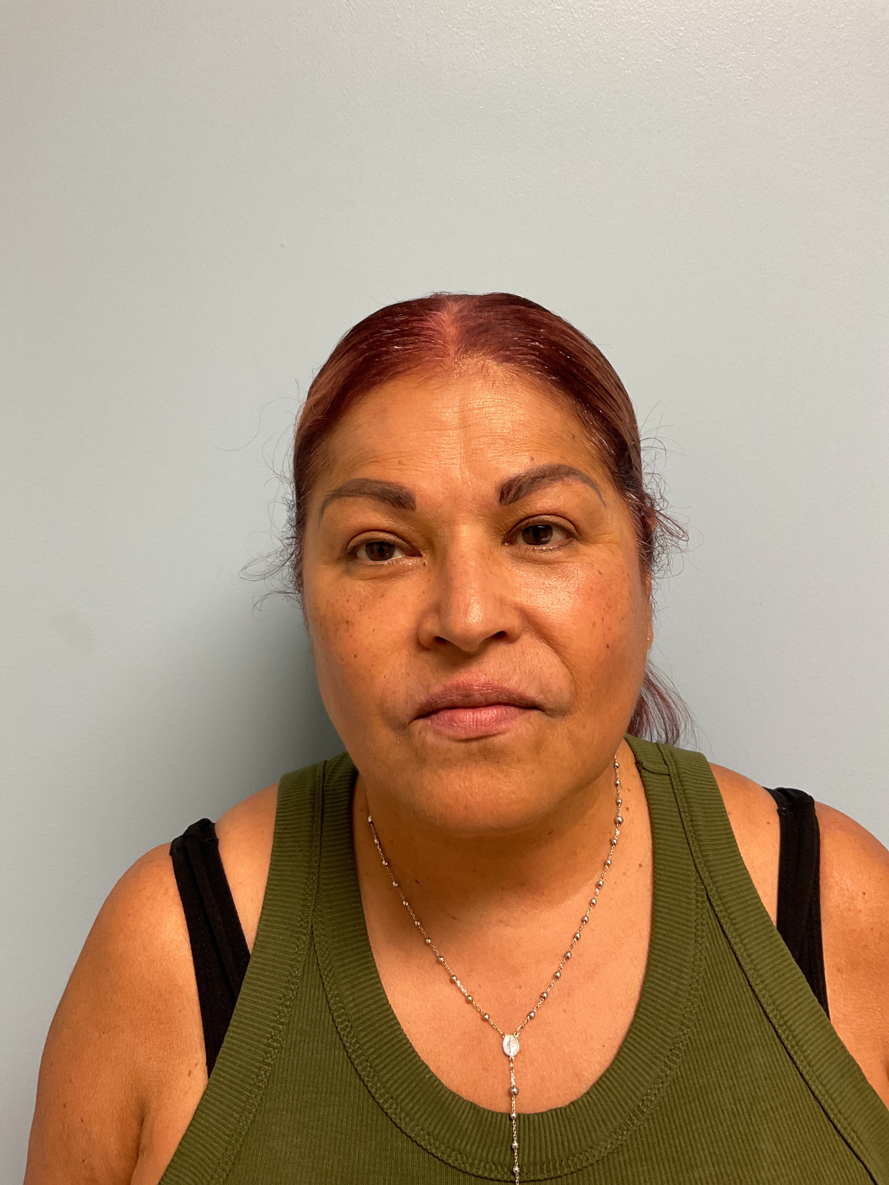 The patient, a 61-year-old female, underwent an upper blepharoplasty procedure. The post-operative images taken five months after the surgery show observable changes in the eyelid area. In the after photo, there is a noticeable reduction in excess skin on the upper eyelids compared to the pre-operative image.