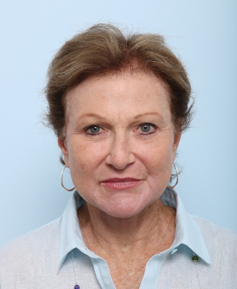 This female patient in her early 70s underwent a facelift, dermabrasion, upper lip shortening, and fat injections. Her procedures lifted and tightened facial skin, smoothed fine lines and texture through dermabrasion, refined the upper lip for enhanced proportion, and restored volume to create a naturally refreshed, youthful appearance.